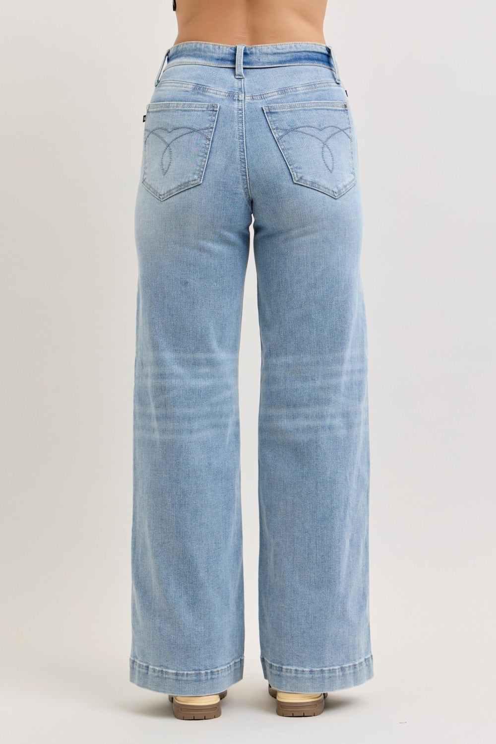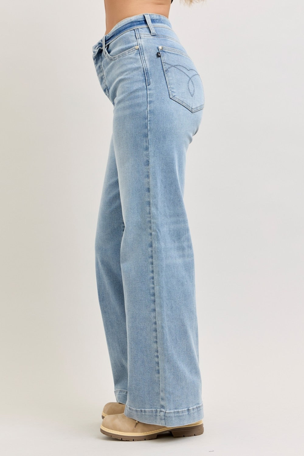 Judy Blue Mid Rise Retro Wide Leg Jeans with Fold-over Waistband